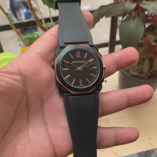 - Combines the Stainless Steel style Blacl dial & Brand Embossed Rosegold Black Bezel